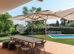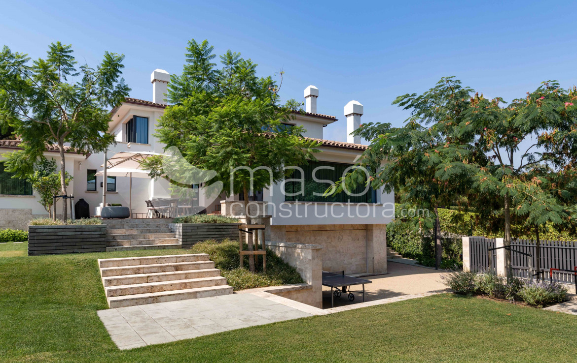 En cuanto al jardín y exteriores, se reacondicionó la piscina en el lugar donde se ubicaba la anterior y se añadió una tarima de madera que rodea la misma.