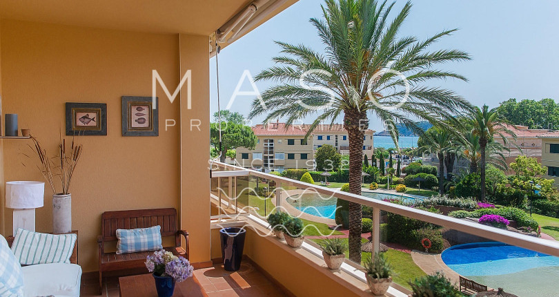 Este apartamento en primera línea de mar en S’Agaró ofrece una oportunidad única de disfrutar de unas vistas espectaculares a la bahía de Sant Pol y al Mediterráneo desde una ubicación privilegiada.