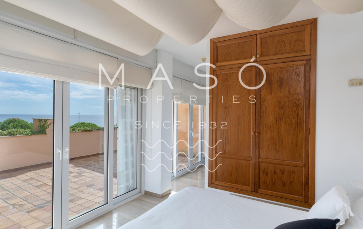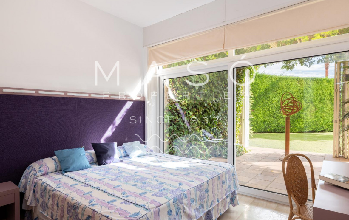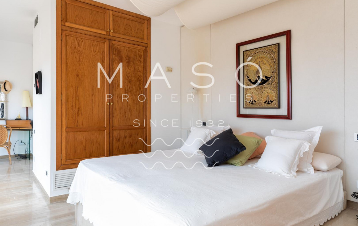 Además, su posición dentro del recinto, a escasos metros de la playa de Sa Conca, contribuye a dotar a la vivienda de una suerte de refugio natural. Un acceso inmediato a la fina arena de Sa Conca que, de este modo, se convierte casi en una playa privada para los residentes.
